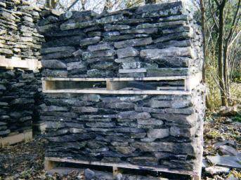 The thin version of the Endless Mountain Fieldstone is especially desirable for building low profile stone walls. All stone is flat with various sizes and thicknesses. 1" to 3" maximum thickness and 8" to 18" diameter.